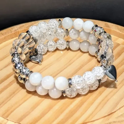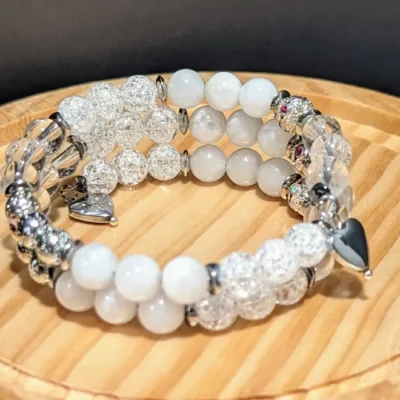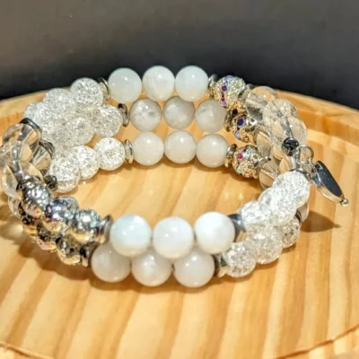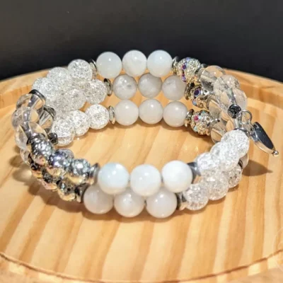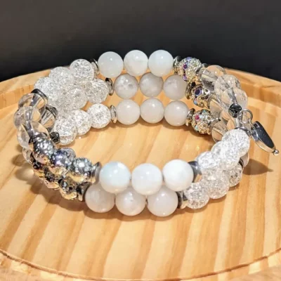 Améliorez votre style avec ce superbe bracelet en pierres blanches! Fabriqué à partir de pierres de cristal et de pierre de lune de haute qualité, c’est l’accessoire parfait pour ajouter une touche d’élégance à n’importe quelle garde-robe. Sentez le pouvoir des pierres couler à travers vous lorsque vous portez ce bracelet magique et remplissez votre vie de positivité et d’harmonie. Découvrez la beauté du bracelet Christina dès aujourd’hui!